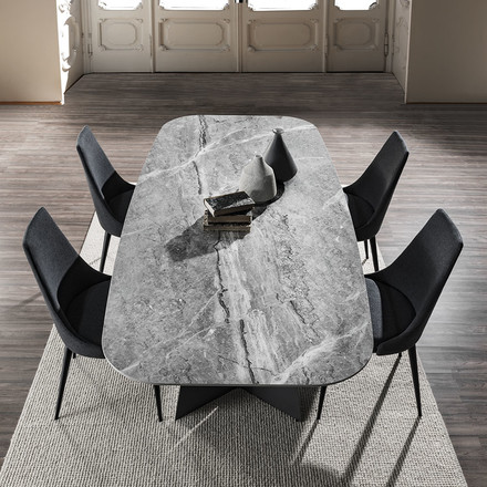 Lampadario a sei luci, con struturra in metallo e ricoperto in ecopelle.