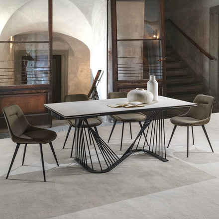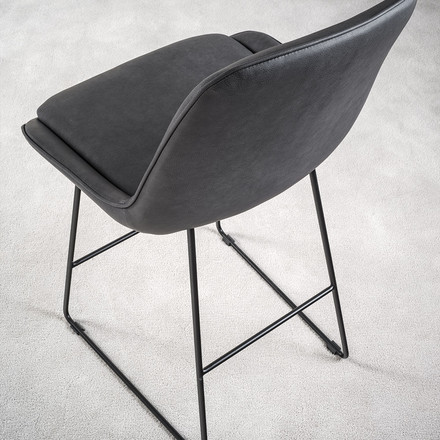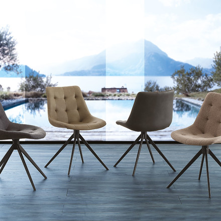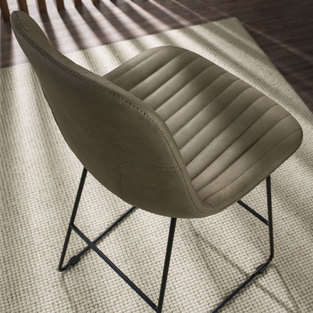 Colorazioni disponibili: struttura in metallo cromo lucido e legno ricoperto in ecopelle bianco; struttura in metallo ottone brunito e legno ricoperto in ecopelle testa di moro.